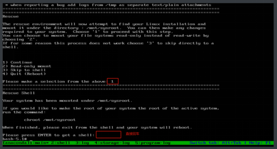 现在需要进入救援模式,通过安装软件包的方式得到这些文件。