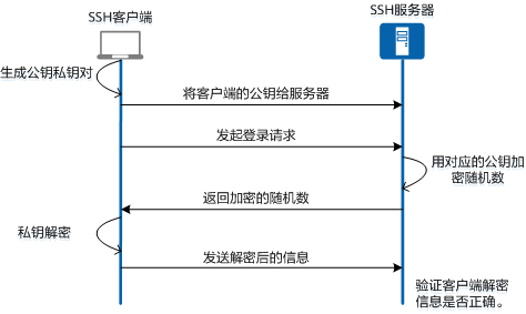 密钥认证的基本原理是服务器端使用客户端的公钥对随机内容加密,客户端使用自己的私钥解密并发送给服务器以证实自己的身份。